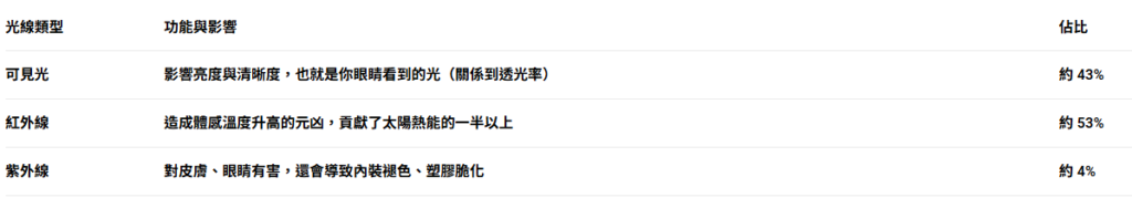 太陽光其實是由三種不同波段的光線組成,而真正讓你覺得悶熱的,並不是你眼睛看到的那一道光:
