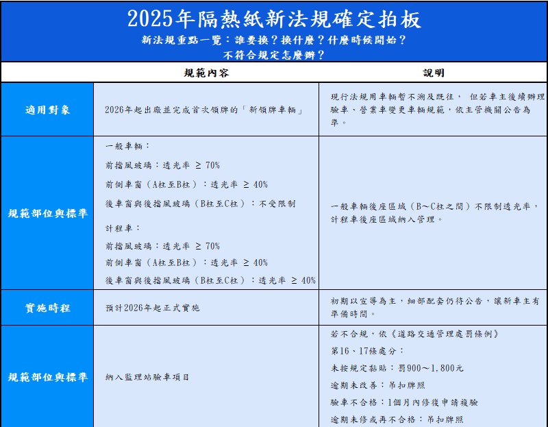 最近你是否也注意到了?關於「2025年隔熱紙新法規」的消息,已在新聞媒體、車友論壇與社群平台間引爆討論。